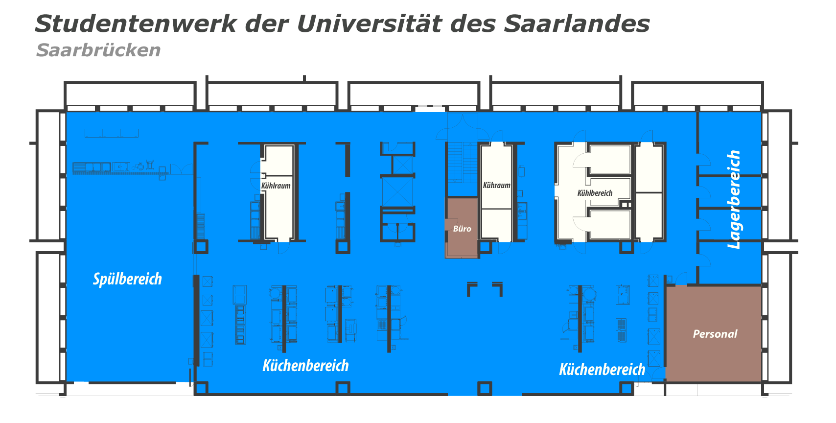 Die Küche einschließlich Speisenausgabe und zentrale Spülanlage wurde in zwei Bauabschnitten generalsaniert. Die komplette Thermik und die Spülanlage mit Nassmüllentsorgung wurde durch uns ausgeführt.